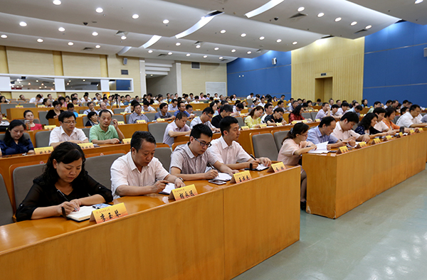 9月10日下午,我校在仙林校区图书馆报告厅召开2014-2015学年第一学期工作部署大会,校党委书记陈章龙作新学期工作部署。全体校领导出席会议,全体中层干部、各民主党派负责人、教代会执委会委员、全体教授参加会议。会议由副校长王开田(主持行政工作)主持。